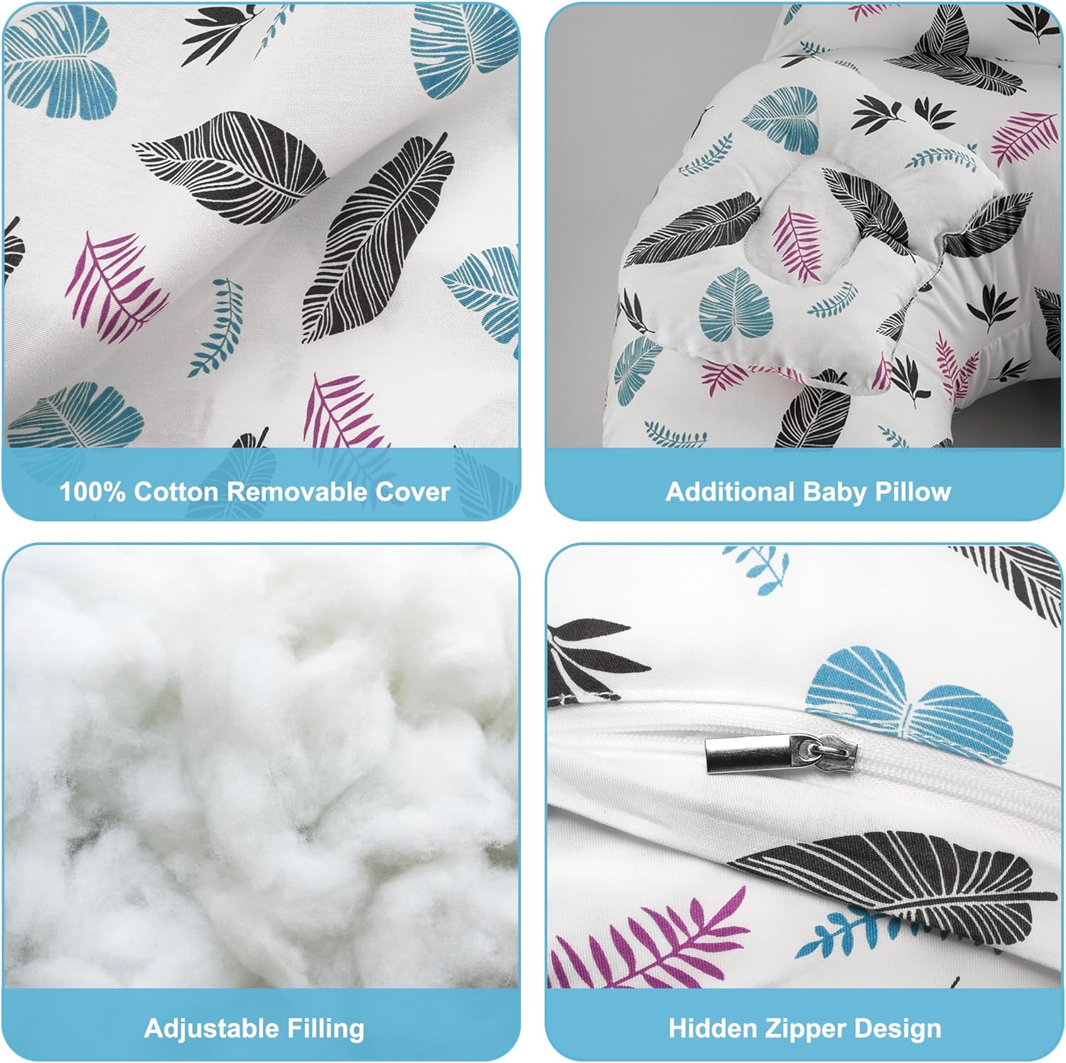 • Versatile Use: Beyond sleeping and feeding, the pillow is useful for lounging. It helps babies maintain a comfortable position while playing or relaxing, promoting overall well-being.