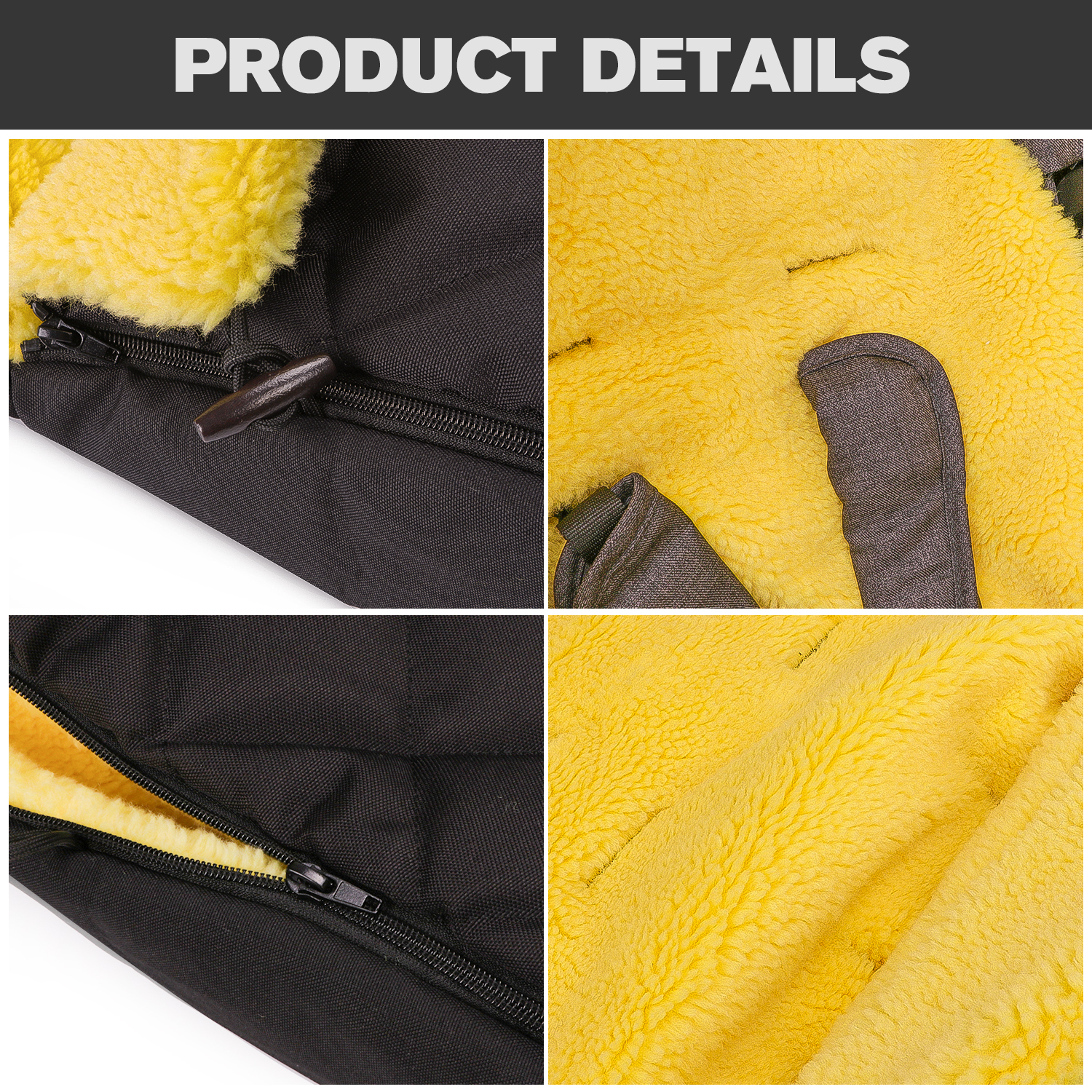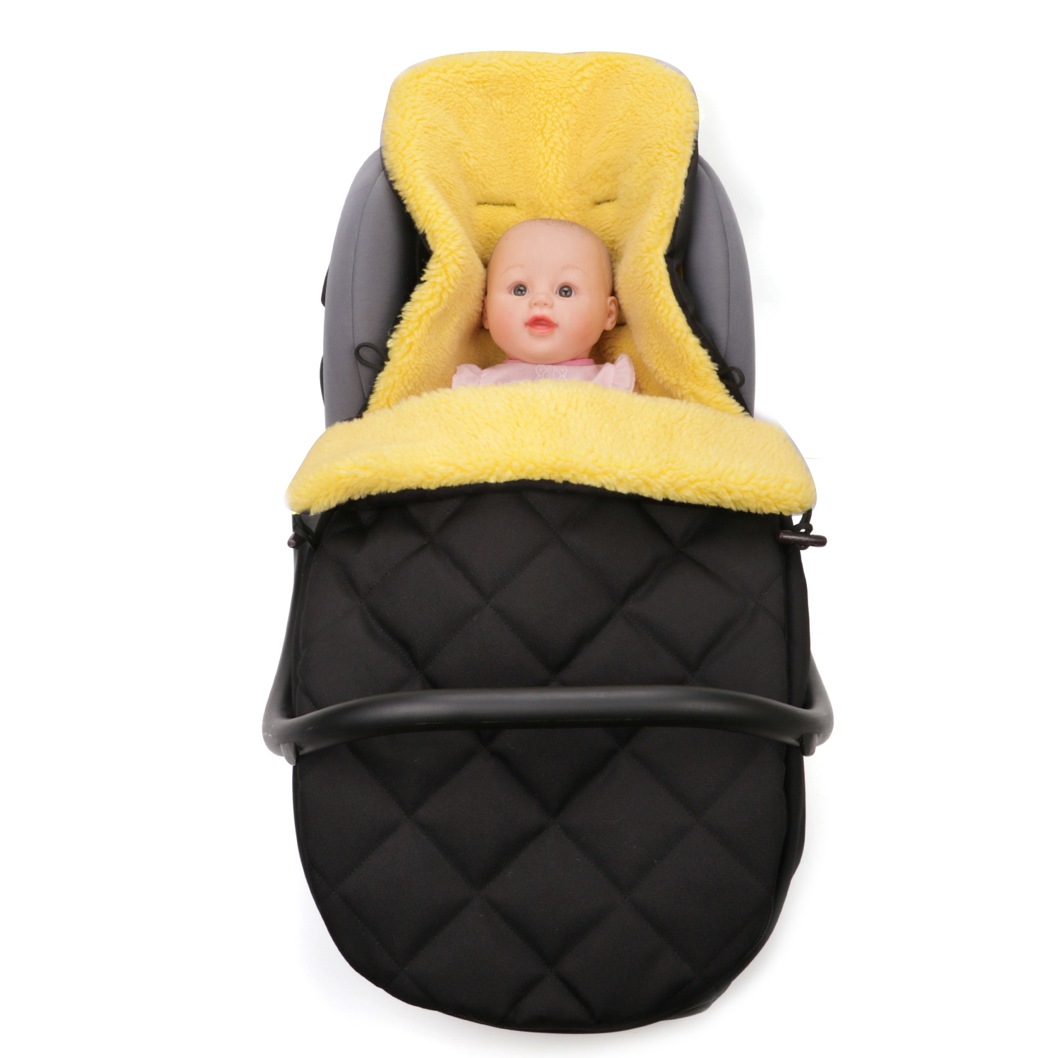 • Full-Length Zipper: A full-length zipper allows easy access to your baby and enables you to adjust the footmuff’s coverage as needed. You can open it up for extra ventilation or close it tightly for added warmth, giving you full control over your baby’s comfort.
