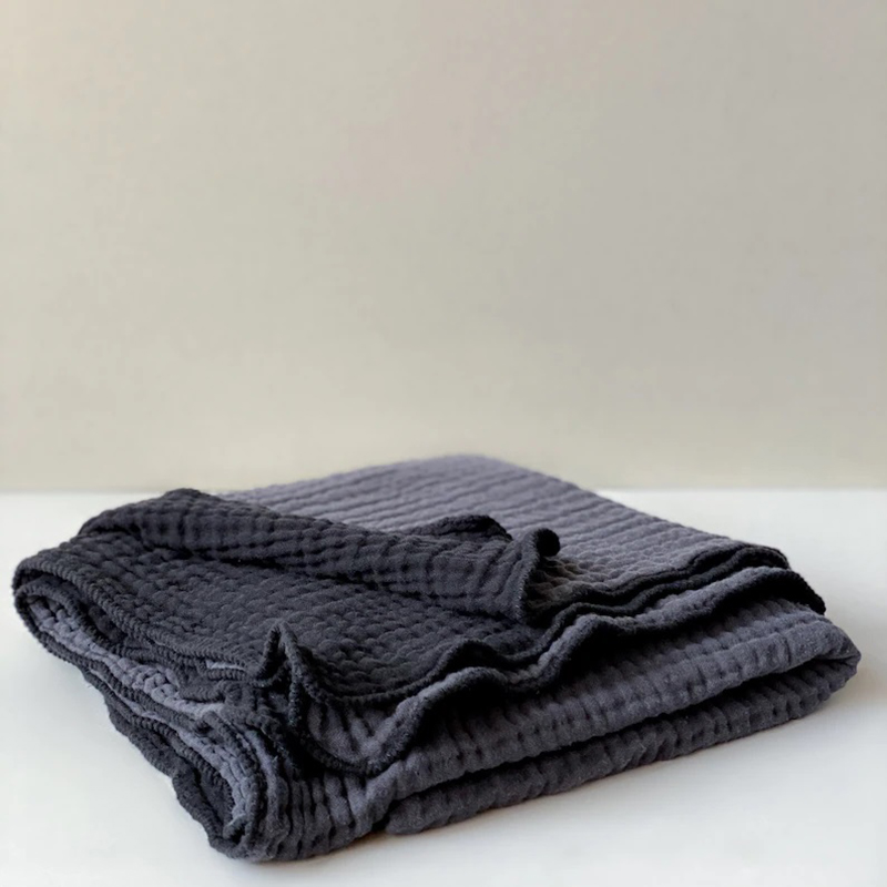 4 layers of cotton gauze.Gauze or “Muslin” as some people call it, is very thin woven cotton fabric. Multiple layers creates a crinkle, waffle like texture after washing. We use the highest quality 100% cotton gauze. This fabric has the large waffle like pattern.